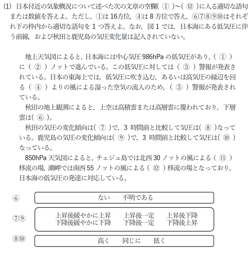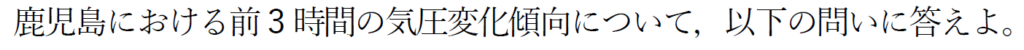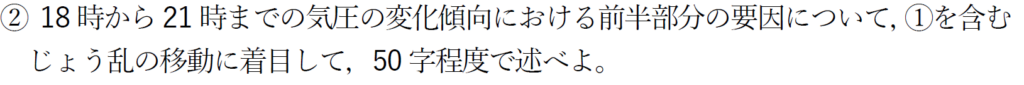 低気圧の中心が遠ざかることに伴う気圧上昇量に比べ、寒冷前線の接近による気圧の下降量が大きかったため(50字)