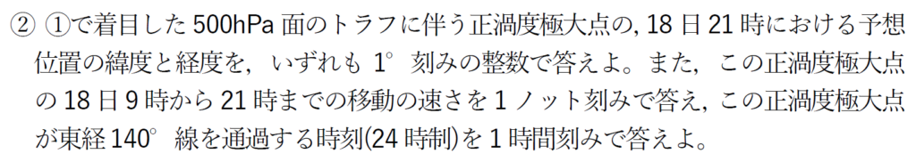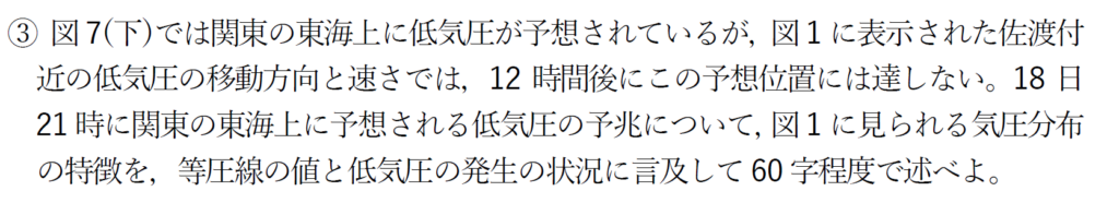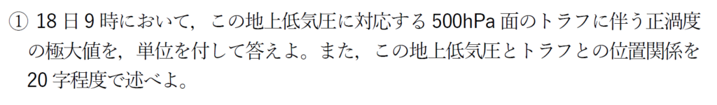 位置関係は、低気圧はトラフの直下にある。(16字)となります。