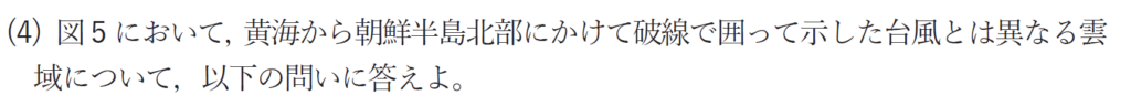 ⑥等圧線は4hPaごとに引かれています。沿海州の高気圧の1020hPaの等圧線から5本目であり、台風で気圧が低い部分であるので、1000hPaとなります。また、20hPaごとに太線となるので、そのルールとも矛盾しません。