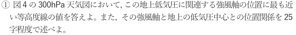 強風軸は地上の低気圧中心のほぼ真上を通っている。(24字)
