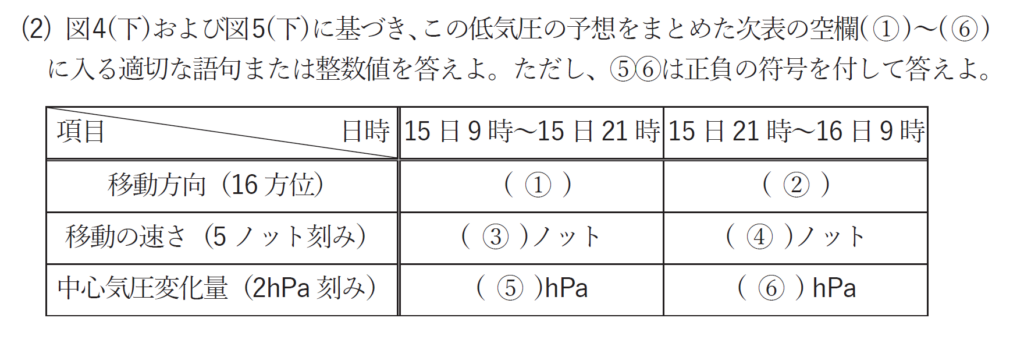 15日21時の低気圧とトラフAの距離については、問題文の指示通り、ほぼ同位置である(計算をすれば求められますが、100km刻みの距離が0km)ので同位置とします。