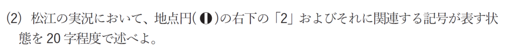 ④那覇は降水の現在天気の記号がないため、雲量で天気を判断します。8分雲量で7ですので曇りです。