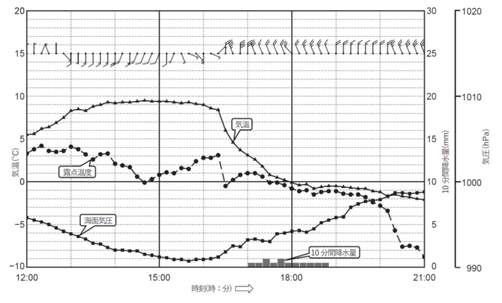 また、この降水の期間には気温がおよそ0℃付近で一定であるため、着雪や着氷も考えられます。