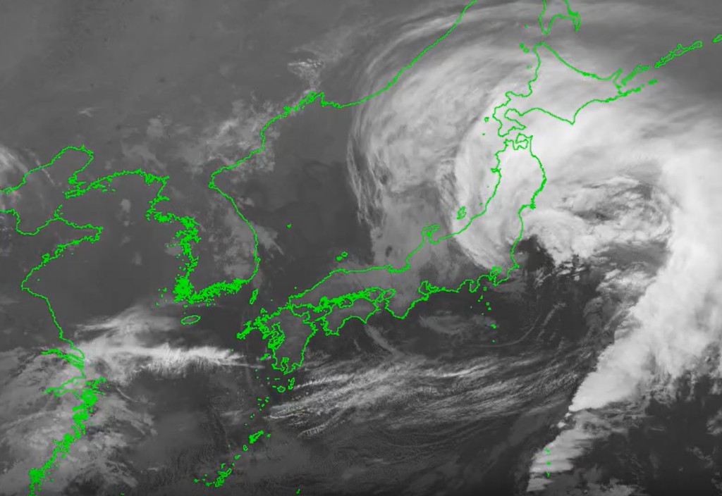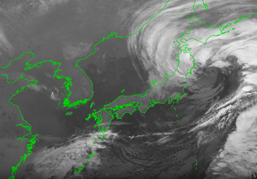 • 特徴: 雲の「厚さ」や「表面の凸凹(テクスチャ)」がよくわかります。霧などの低い雲の発見に有効です。