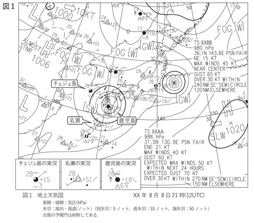 まず、台風の初期時刻から12時間後の移動についてです。初期時刻の位置は図1から読み取れます。
