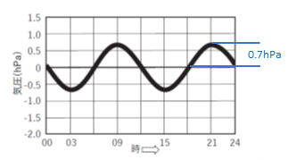 問題文の条件から、大気潮汐による変化は+0.7hPa。