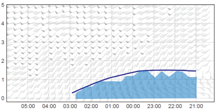 21時以降に観測された風向で、東成分を含んでいるところを下記のように塗りつぶしています。